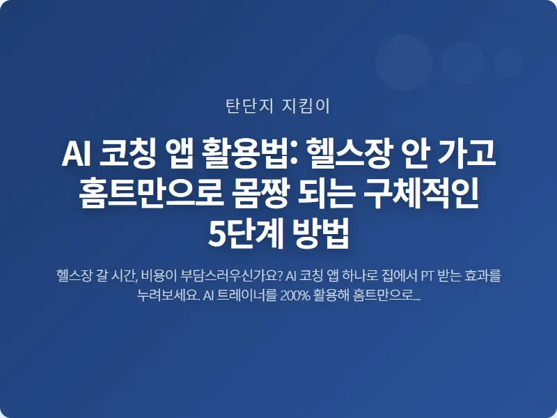 오늘은 제가 직접 경험하고 효과를 본, AI 코칭 앱을 활용해 홈트만으로 목표를 달성하는 구체적인 5단계 방법을 아낌없이 공유해 드리겠습니다.