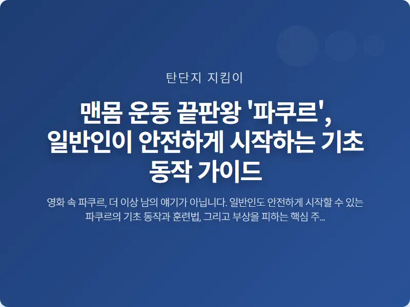 오늘은 맨몸 운동의 끝판왕이라 불리는 파쿠르에 대한 오해를 풀고, 일반인도 안전하게 시작할 수 있는 기초 체력 훈련법과 핵심 기초 동작 3가지를 소개해 드리겠습니다.
