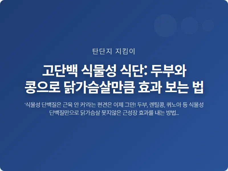 고단백 식물성 식단: 두부와 콩으로 닭가슴살만큼 효과 보는 법