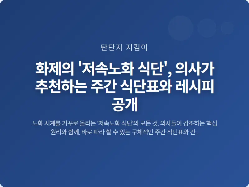오늘은 막연하게만 느껴졌던 저속노화 식단의 핵심 원리는 무엇인지, 그리고 당장 오늘부터 실천할 수 있는 의사 추천 주간 식단표와 초간단 레시피까지 모두 알려드리겠습니다.